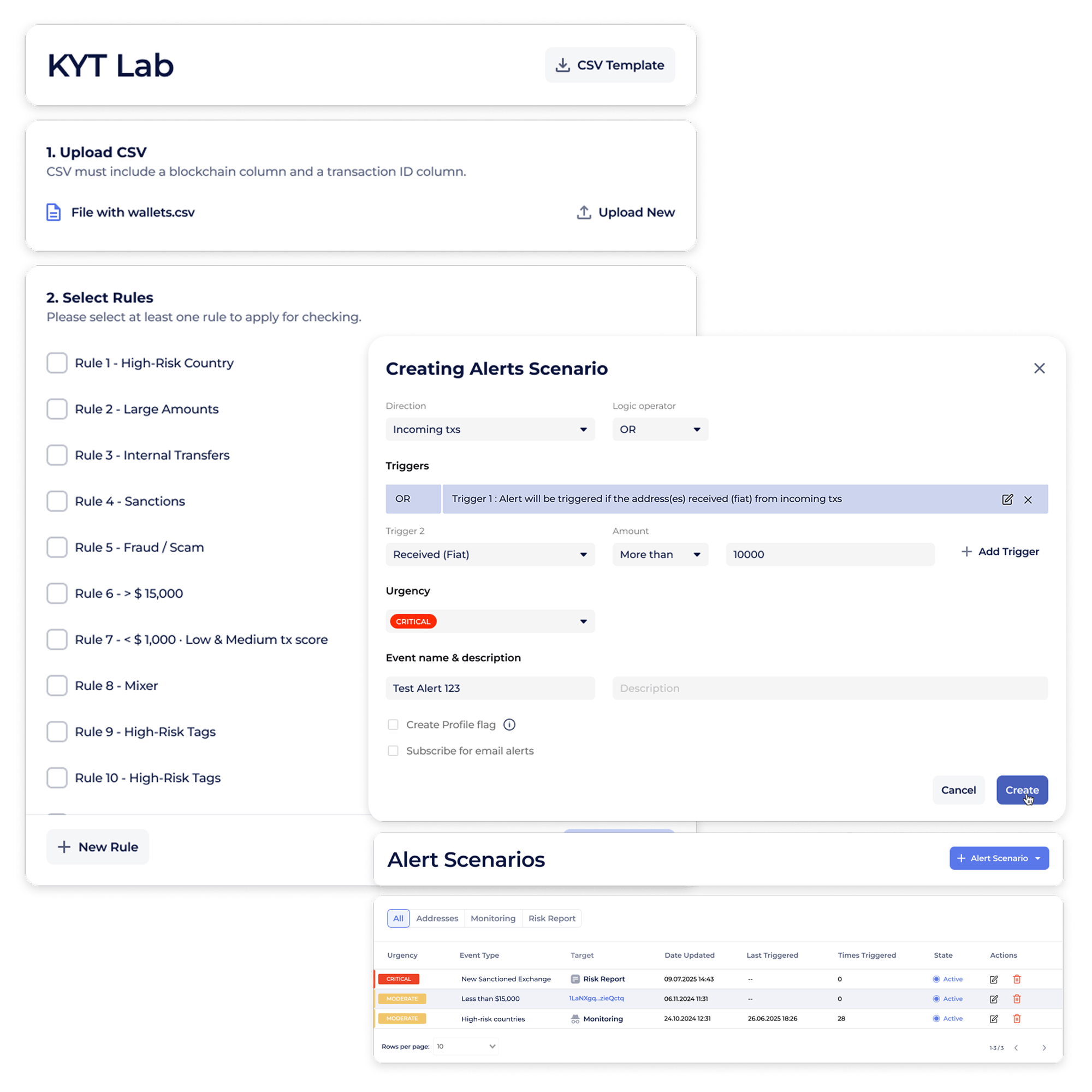Optimize compliance speed and costs with real-time monitoring, automated risk scoring, audit-ready reporting, and customizable alerts.
